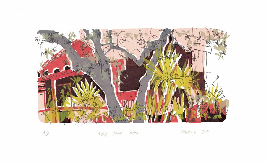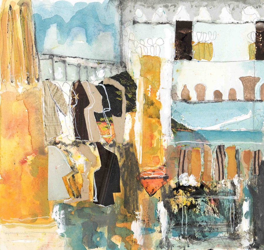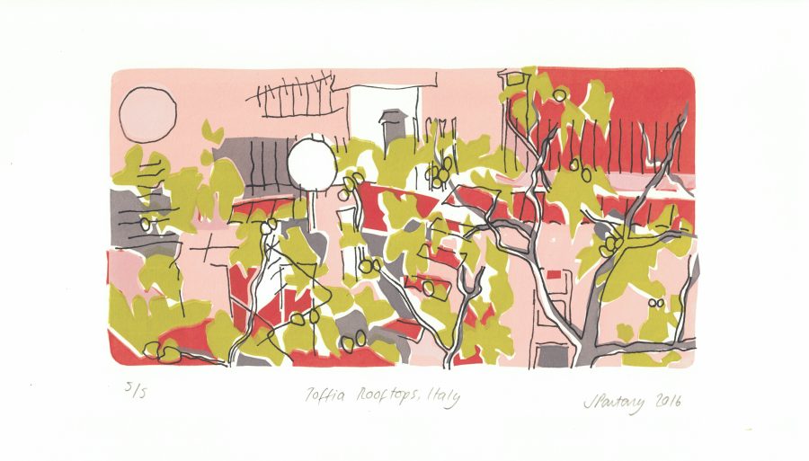 I have been visiting Italy for over a decade, initially I just brought my sketchbook and used it as a travel journal; the drawings I developed into screen prints. Then my sketchbooks became more elaborate and I started to introduce collage, pigments, paint, pencils, whatever I felt worked.
